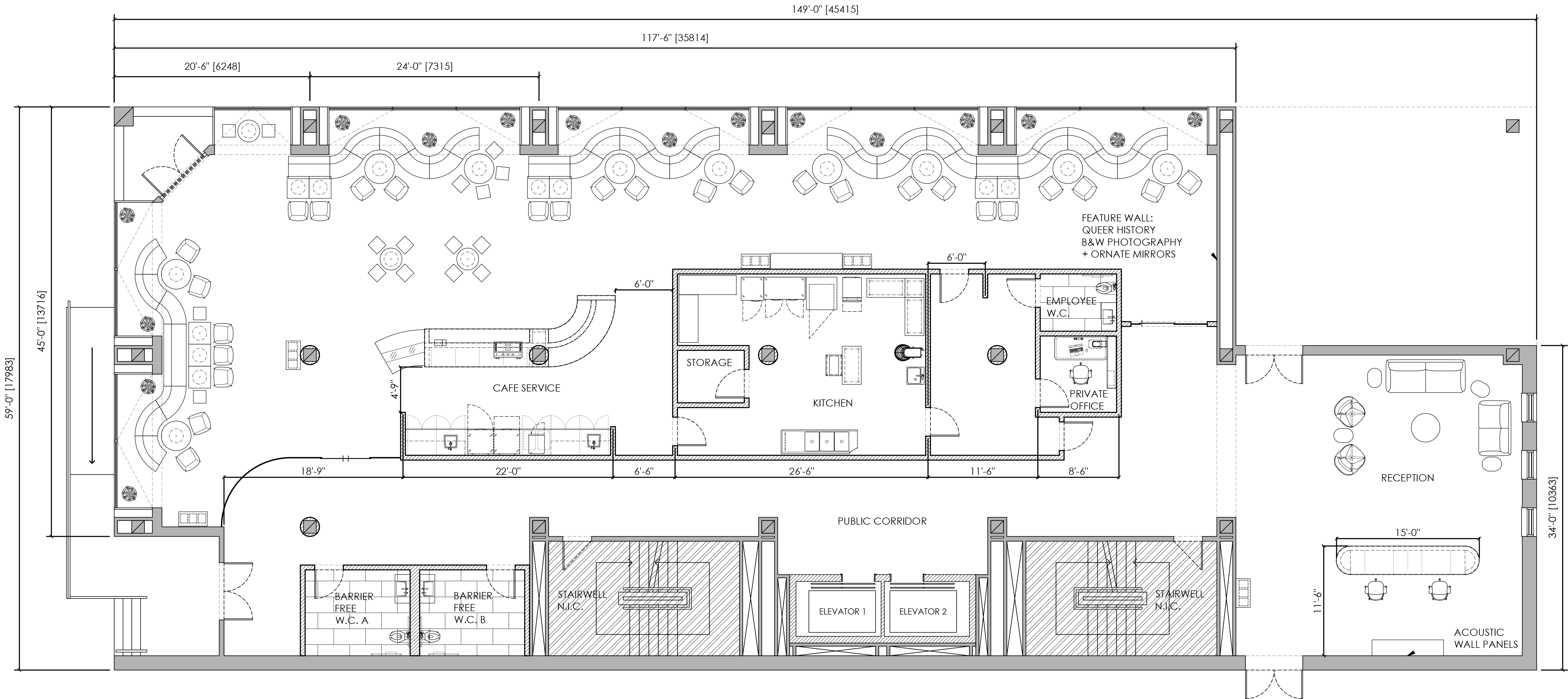 Envisioned as a not-for-profit, this social club celebrates the LGBTQ+ community and provides environments fostering diversity, freedom of expression, and social connection. Occupying all six floors, the centre includes a cafe, drag bar, guest house, fundraising + gallery space, office space and a rooftop patio. Named Fluid+, as a nod to gender and sexual fluidity, the interiors are loosely referential of Studio 54, with a mix 70's aesthetics and colour palettes drawn from lipstick and makeup shades.